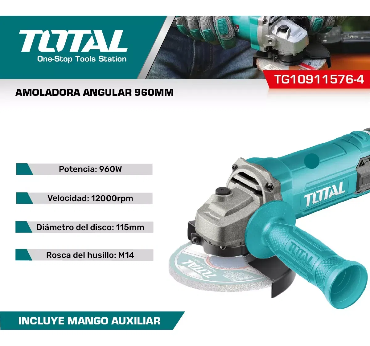 Amoladora Angular 960w/115mm INDUSTRIAL TOTAL TG10911576-4
