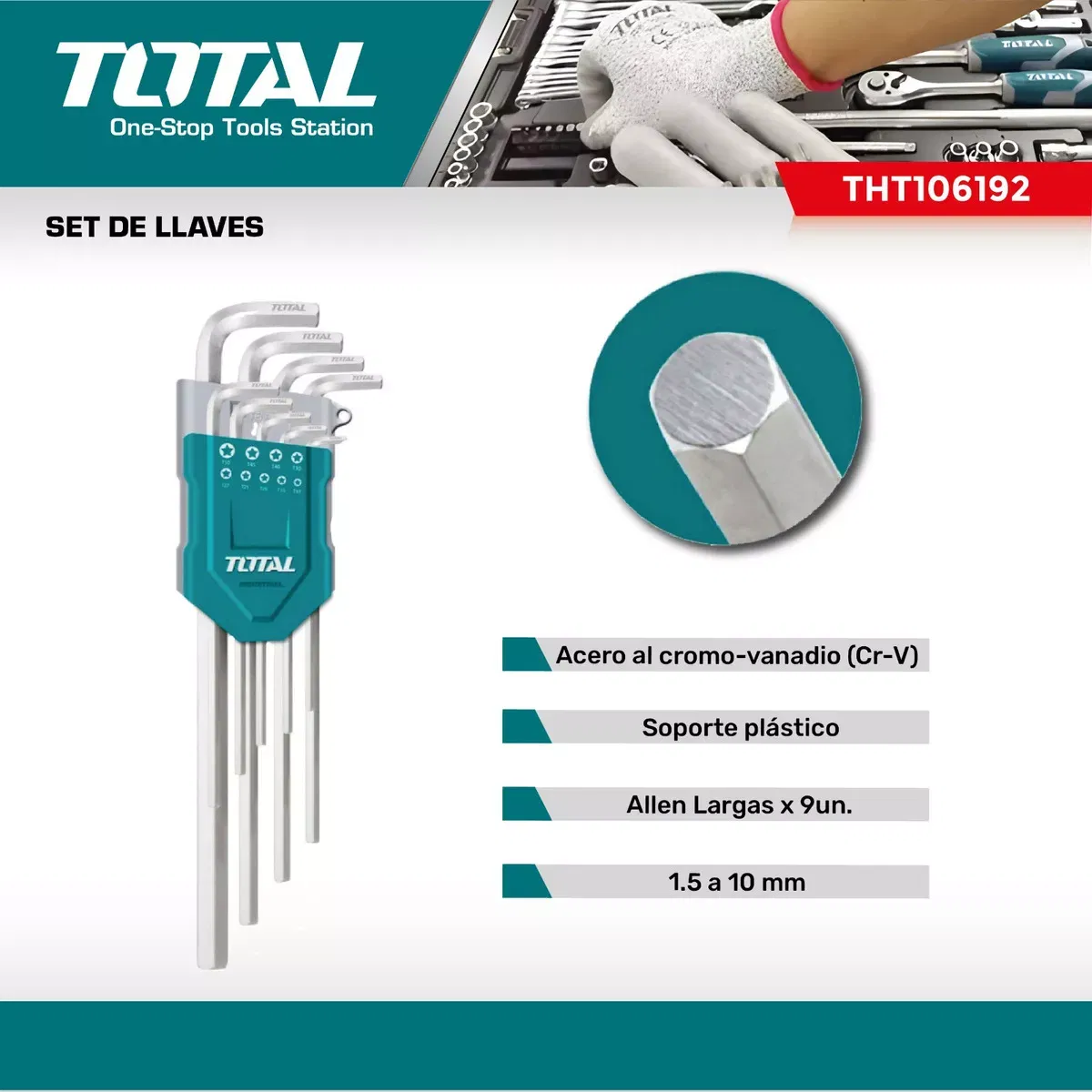 Set llaves hexagonales largas x 9u TOTAL THT106192