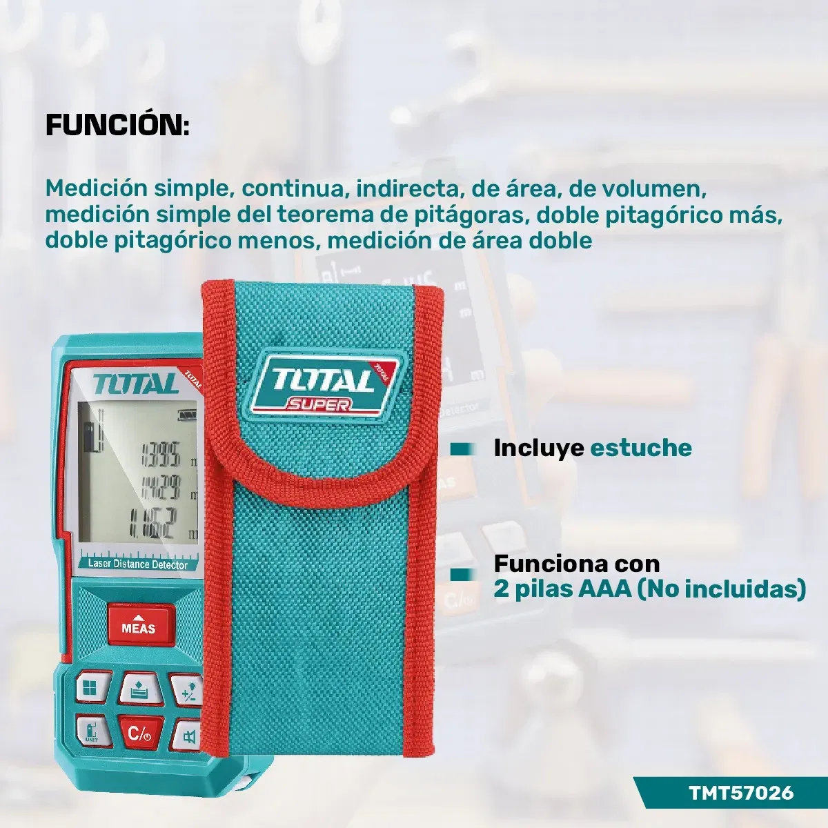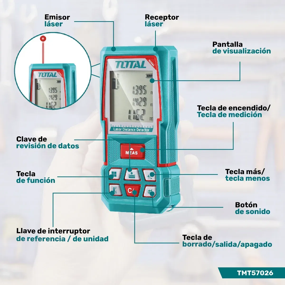 Este dispositivo es útil para medir distancias, áreas y volúmenes de manera rápida y precisa